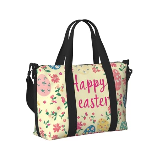 Mexpekil Happy Easter Floral Eggs Travel Duffel Bag Waterproof Sports Gym Bag Large Weekend Overnight Bags for Women Men Foldable Carry On Luggage Tote Bag for Flight