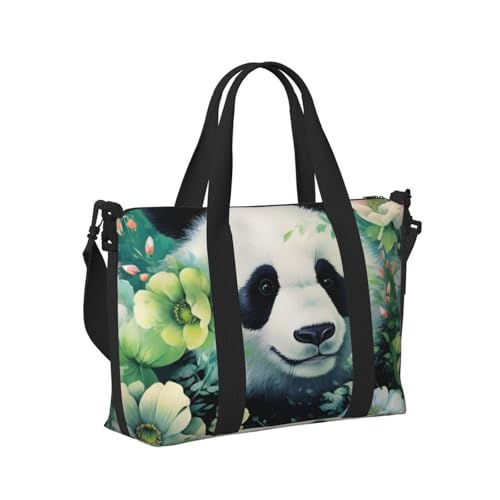 Mexpekil Panda Green Flower Travel Duffel Bag Waterproof Sports Gym Bag Large Weekend Overnight Bags for Women Men Foldable Carry On Luggage Tote Bag for Flight
