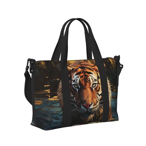 Mexpekil Cool Tiger Travel Duffel Bag Waterproof Sports Gym Bag Large Weekend Overnight Bags for Women Men Foldable Carry On Luggage Tote Bag for Flight