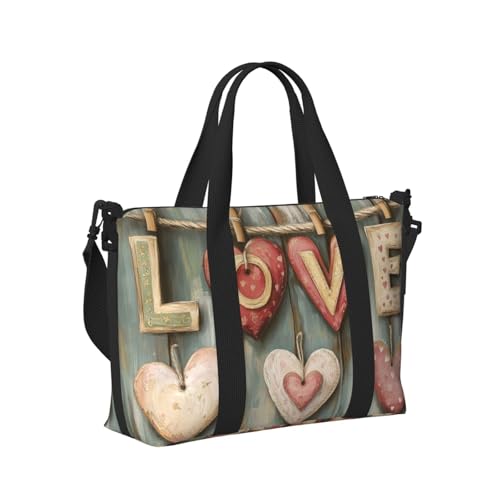 Mexpekil Vintage Heart Love Wood Travel Duffel Bag Waterproof Sports Gym Bag Large Weekend Overnight Bags for Women Men Foldable Carry On Luggage Tote Bag for Flight