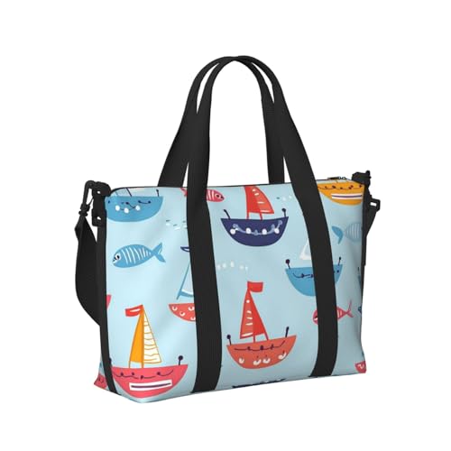 Mexpekil Colorful Sailboats Fish Travel Duffel Bag Waterproof Sports Gym Bag Large Weekend Overnight Bags for Women Men Foldable Carry On Luggage Tote Bag for Flight