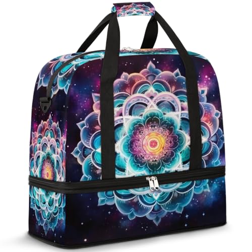 Travel Duffel Bag with Shoes Compartment & Trolley Sleeve Galaxy Boho Mandala Sports Gym Bag Foldable Weekend Bags for Women Men