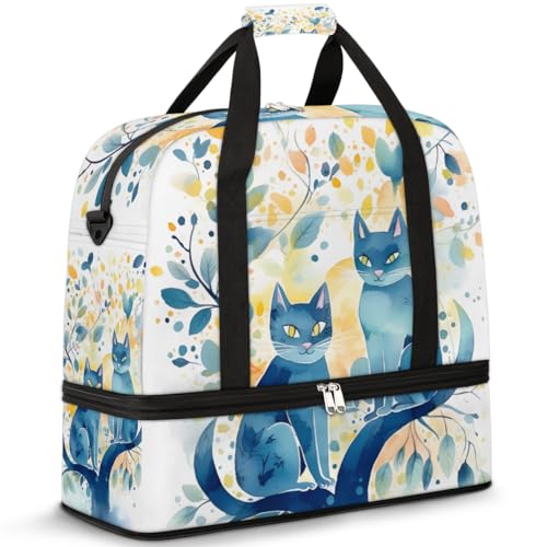 Travel Duffel Bag with Shoes Compartment & Trolley Sleeve Tree Cat Sports Gym Bag Foldable Weekend Bags for Women Men