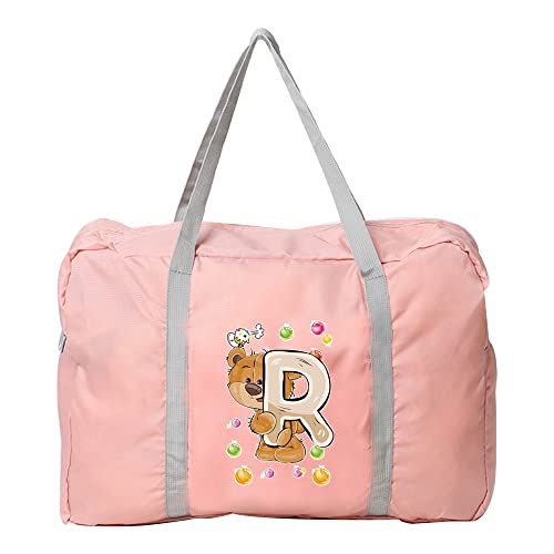 Initial Letter Printed Cabin Bag 45x36x20 for Easyjet Airlines Underseat Travel Bag Holdall Bag Carry on Hand Luggage Weekend Bag Packable Travel Duffel Bag,Sports Fitness Luggage (Pink)