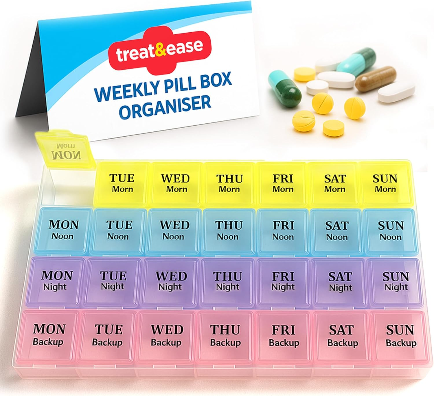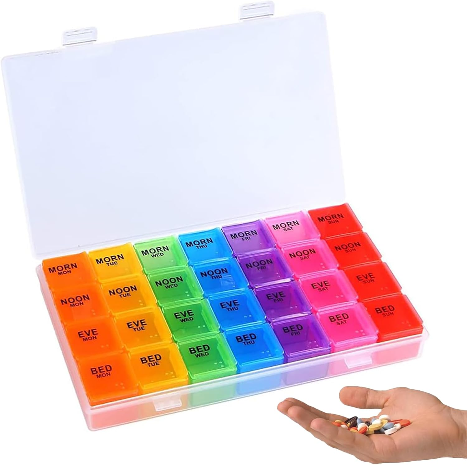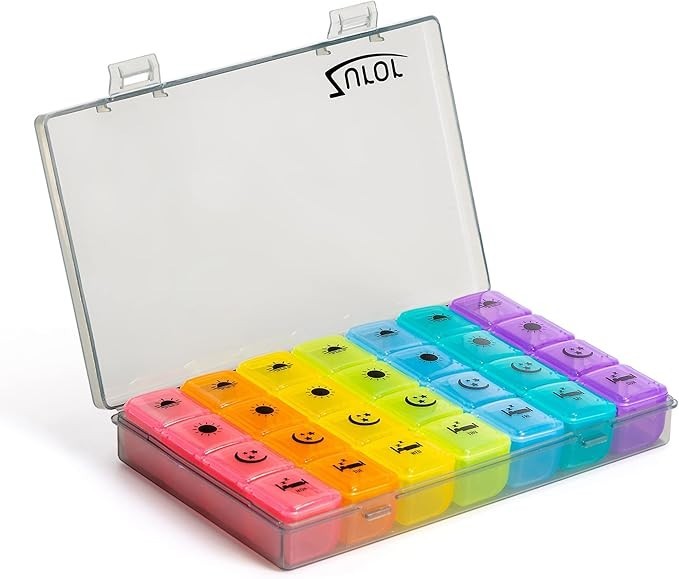Weekly Pill Box Organiser - 7 Day 4 Times a Day - Colourful Compartments, Large