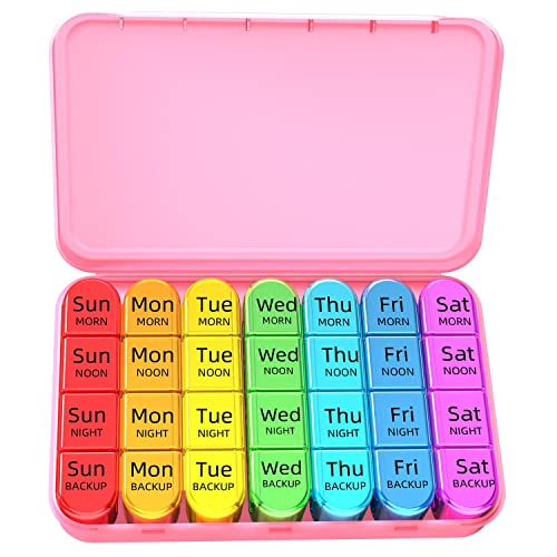 Doruimi Weekly Pill Box Organiser, Small Pill Box 7 Day 4 Times A Day, Pill Organiser with 28 Copartments to Hold Plenty of Medication, Vitamins and Supplements - Pink Case