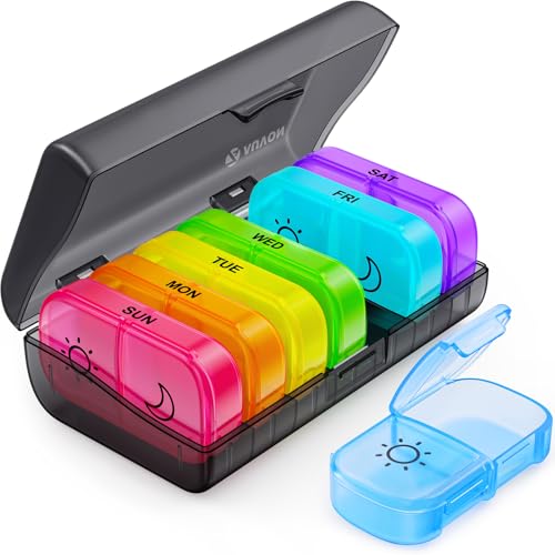 AUVON Pill Boxes 7 Day 4 Times a Day,Portable Weekly Pill Box Organiser with Moi