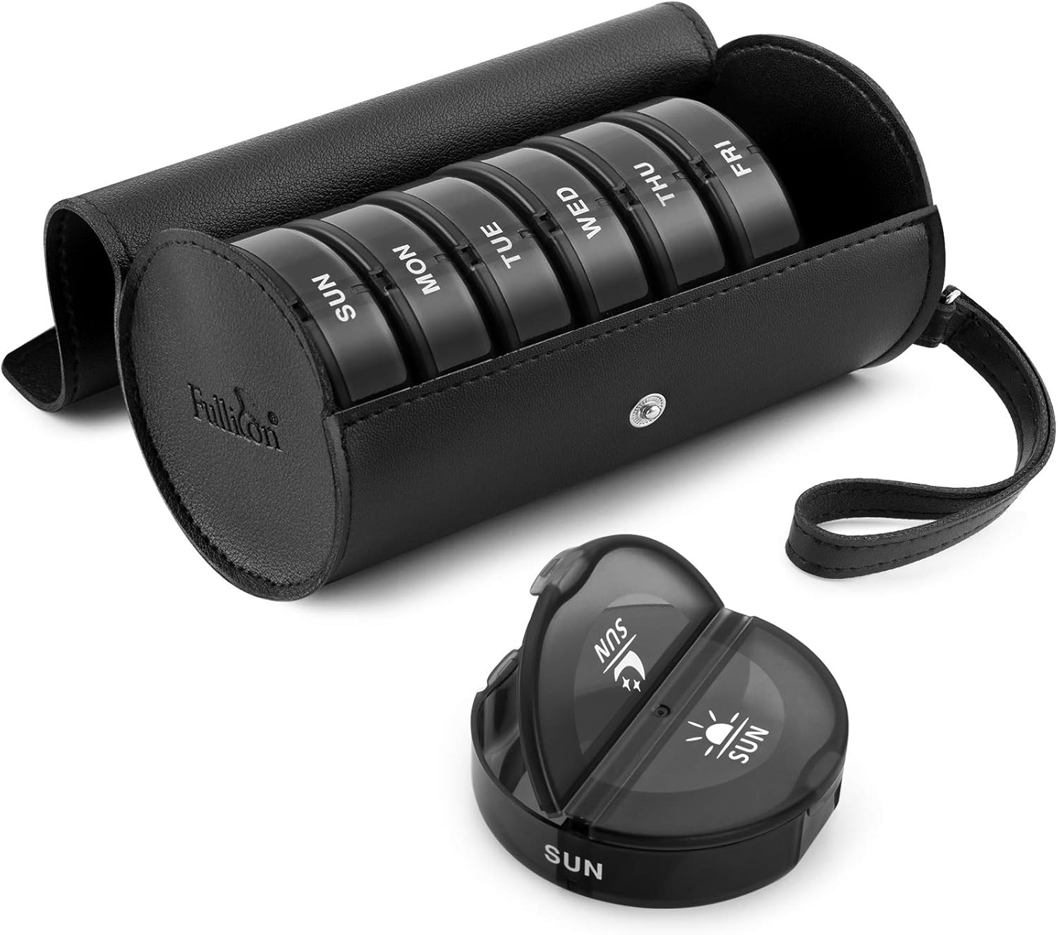 Fullicon PU Case Weekly Pill Box Organiser 2 Times a Day, Travel 7 Day Pill Boxe