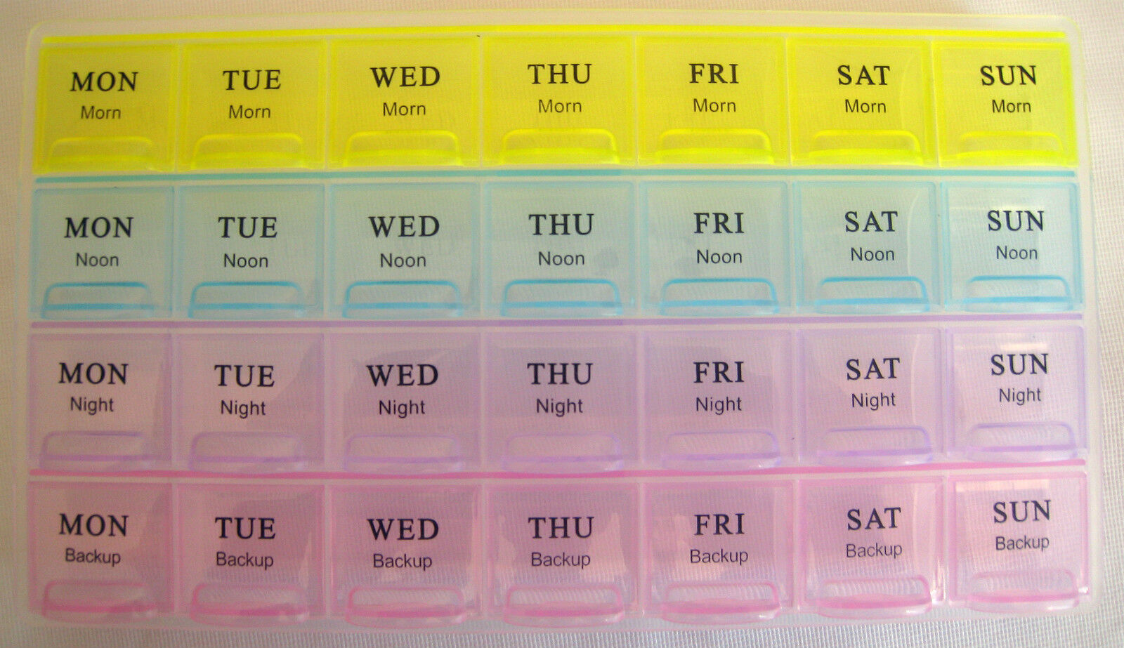 7 Day (Weekly) Jumbo Large Pill Box with 28 Compartments in Pastel Colour