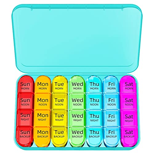 Doruimi Weekly Pill Box Organiser, Small Pill Box 7 Day 4 Times A Day, Pill Organiser with 28 Copartments to Hold Plenty of Medication, Vitamins and Supplements - Cyan Case