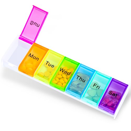 Weekly Pill Box, Travel Pill Organiser 7 Day, Portable Tablet Organiser with 7 C