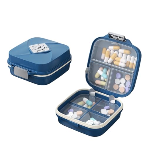 Pill Box 4 Times a Day, Betife Weekly Pill Box Organisers, 7 Day Tablet Organiser, Daily Pill Dispenser 7 Day 4 Compartments, Tablet Box for Medication, Vitamins and Supplements (Blue)