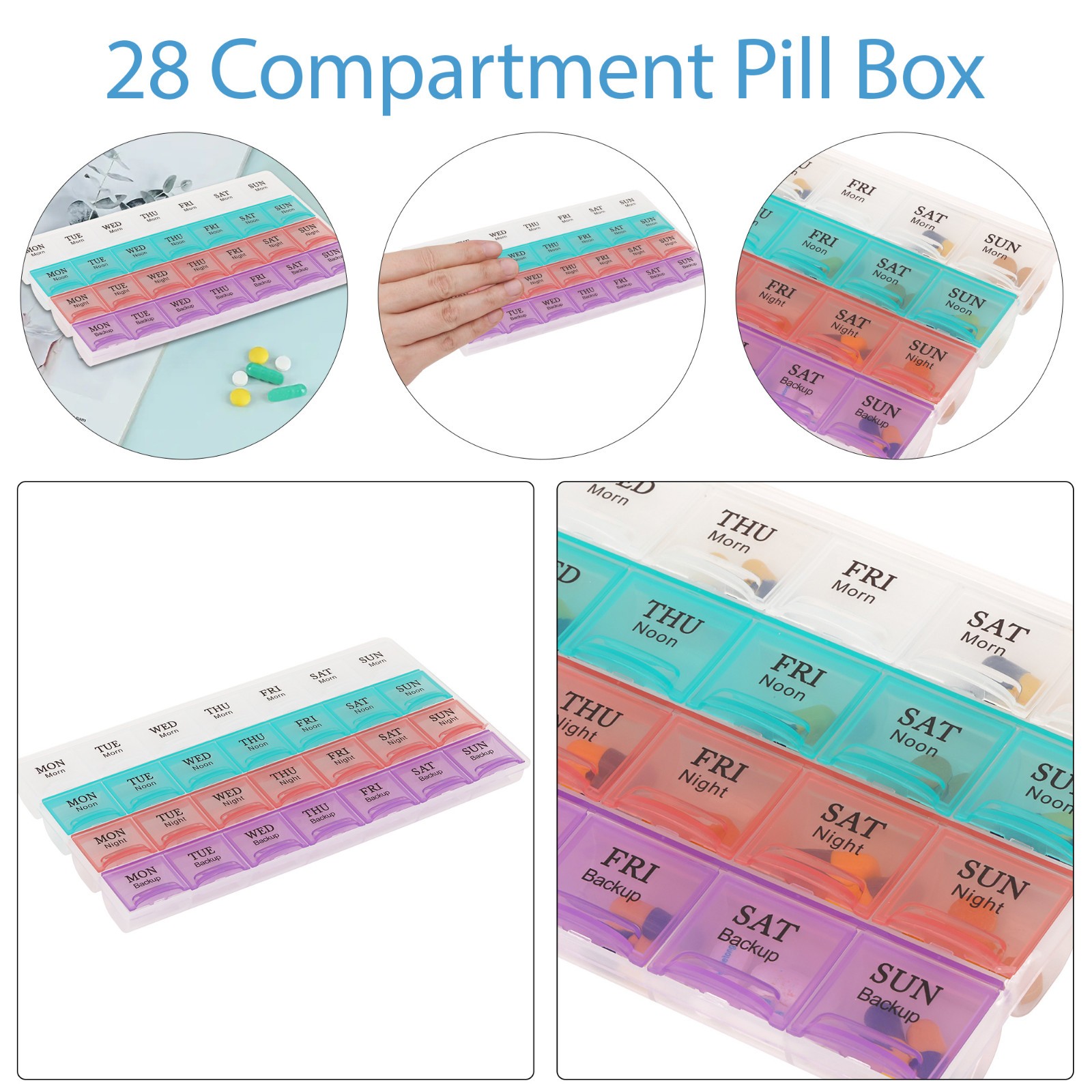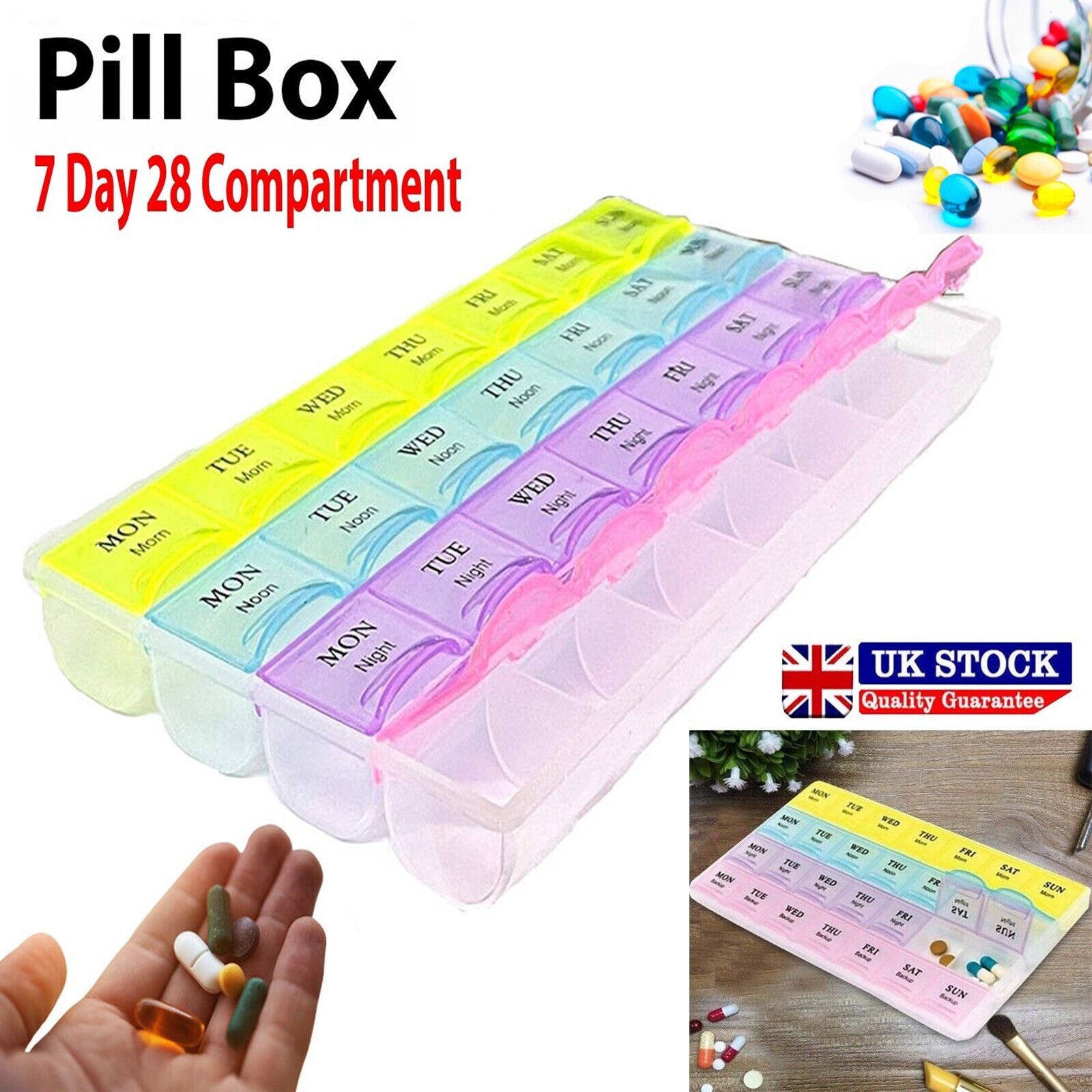Weekly Pill Box 7 Day 28 Compartment Tablet Organiser Medicine Storage Dispenser