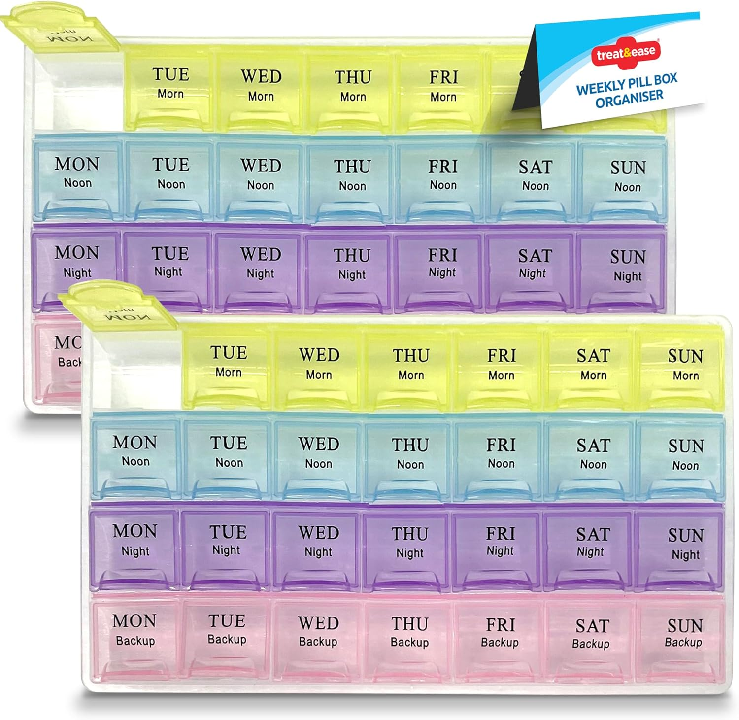 2Pk Weekly Pill Box Organiser - 7 Day 4 Times a Day - Colourful Compartments, La
