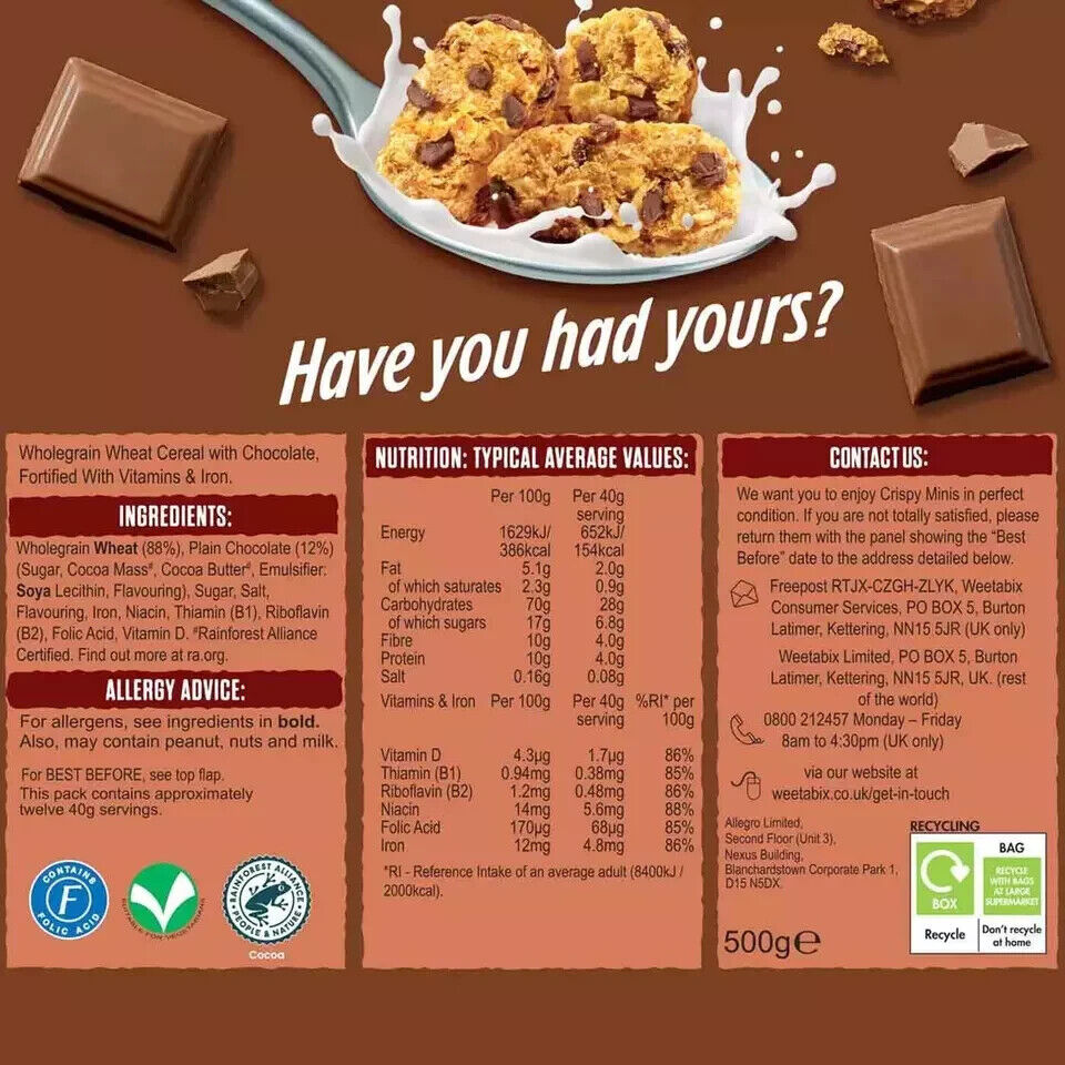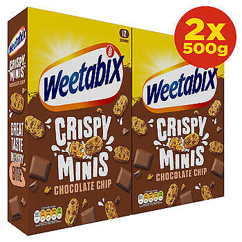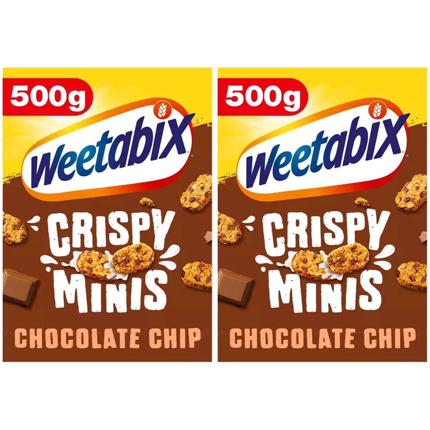 Weetabix Crispy Minis Chocolate 100% Wholegrain High Fibre Choc Chips - 500g X 2