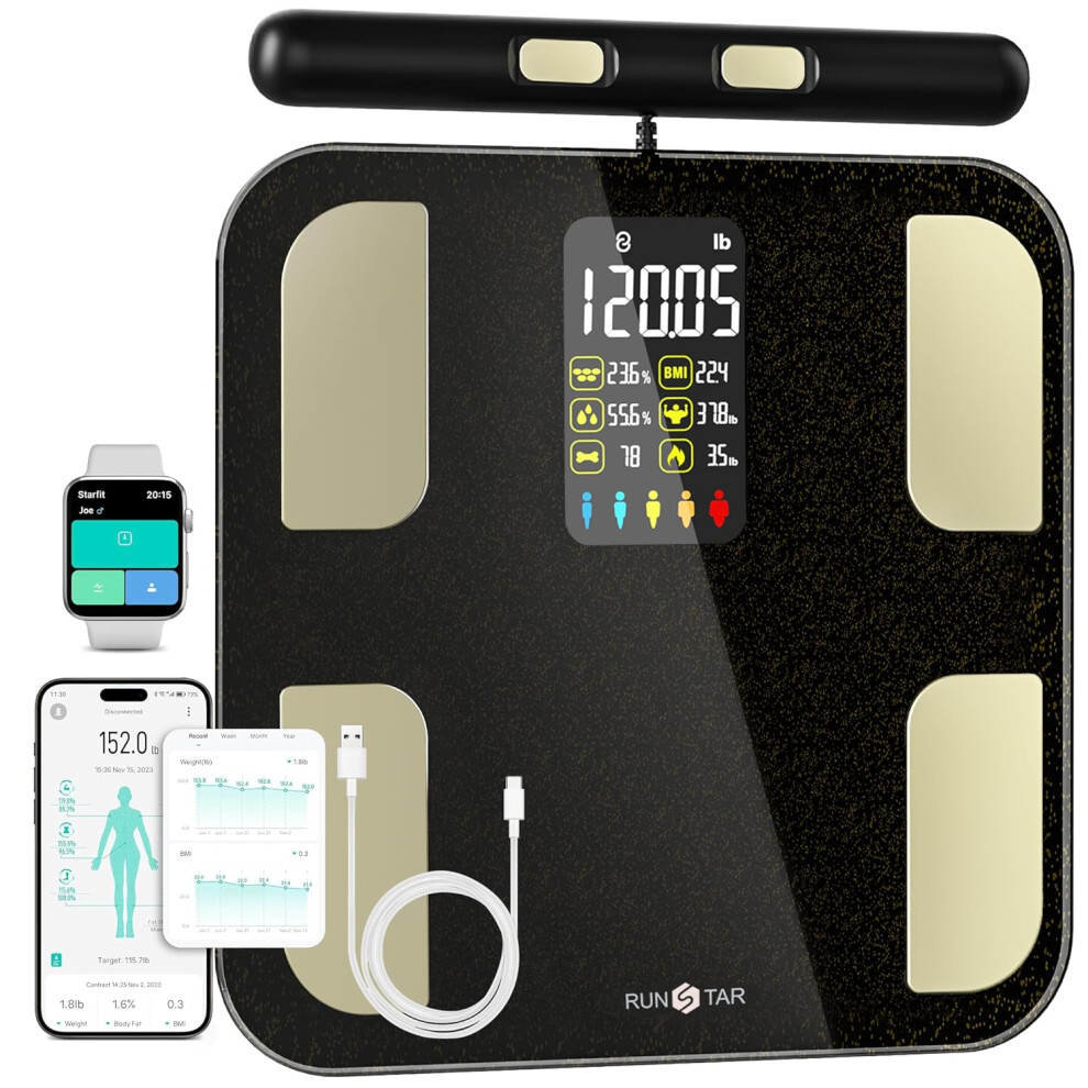 GE Scale for Body Weight and Fat, Digital 8-Electrode Smart Bathroom Scale 50 Measurements for BMI Muscle Mass Body Composition Analyzer Bluetooth Accurate Weighing Machine, 180kg/400 Pounds Capacity