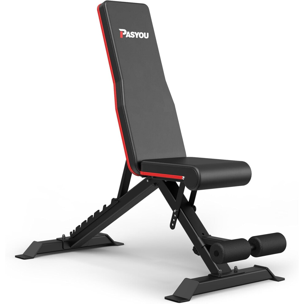 PASYOU Adjustable Weight Bench Press Foldable Workout Bench 700 Pounds Load Flat Incline/Decline Strength Training Benches, Sit Up Exercise Bench for