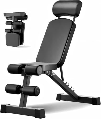 Weight Bench Foldable, Adjustable Bench press with Leg Extension, Preacher Pad, Extended Headrest, Gym Bench for Home Gym 800lbs Full Body Workouts Strength Training
