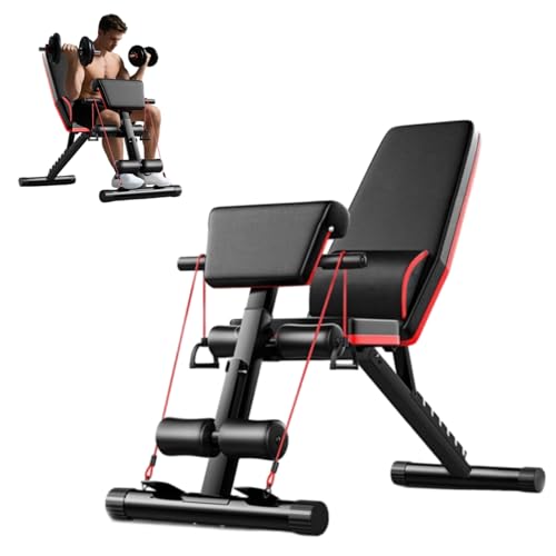GJQGYY 5-in-1 Adjustable Weight Bench Foldable Exercise Bench Ergonomic 7 Position Adjustable Seat Sit Up AB Incline Abs Bench Flat Fly Press Fitness Rope