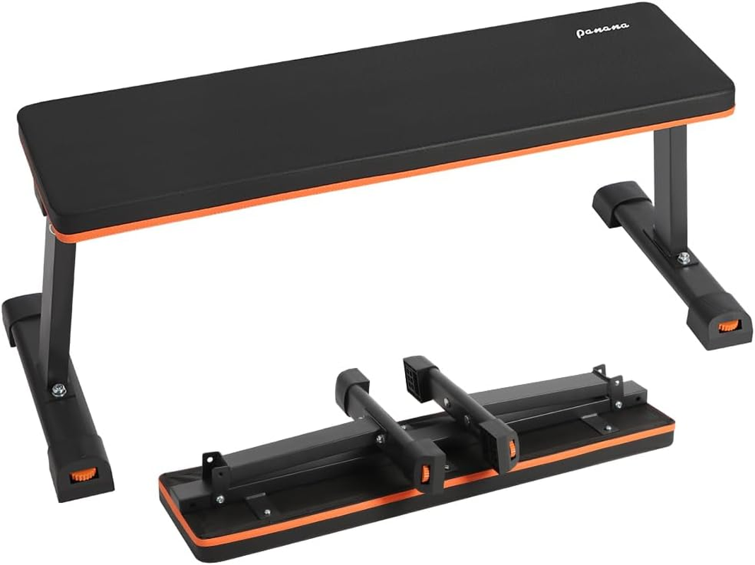 Panana Flat Weight Bench, Foldable Strength Training Workout Bench with Thickness Pad & Adjustable Foot Caps for Full Body Workout Home Gym