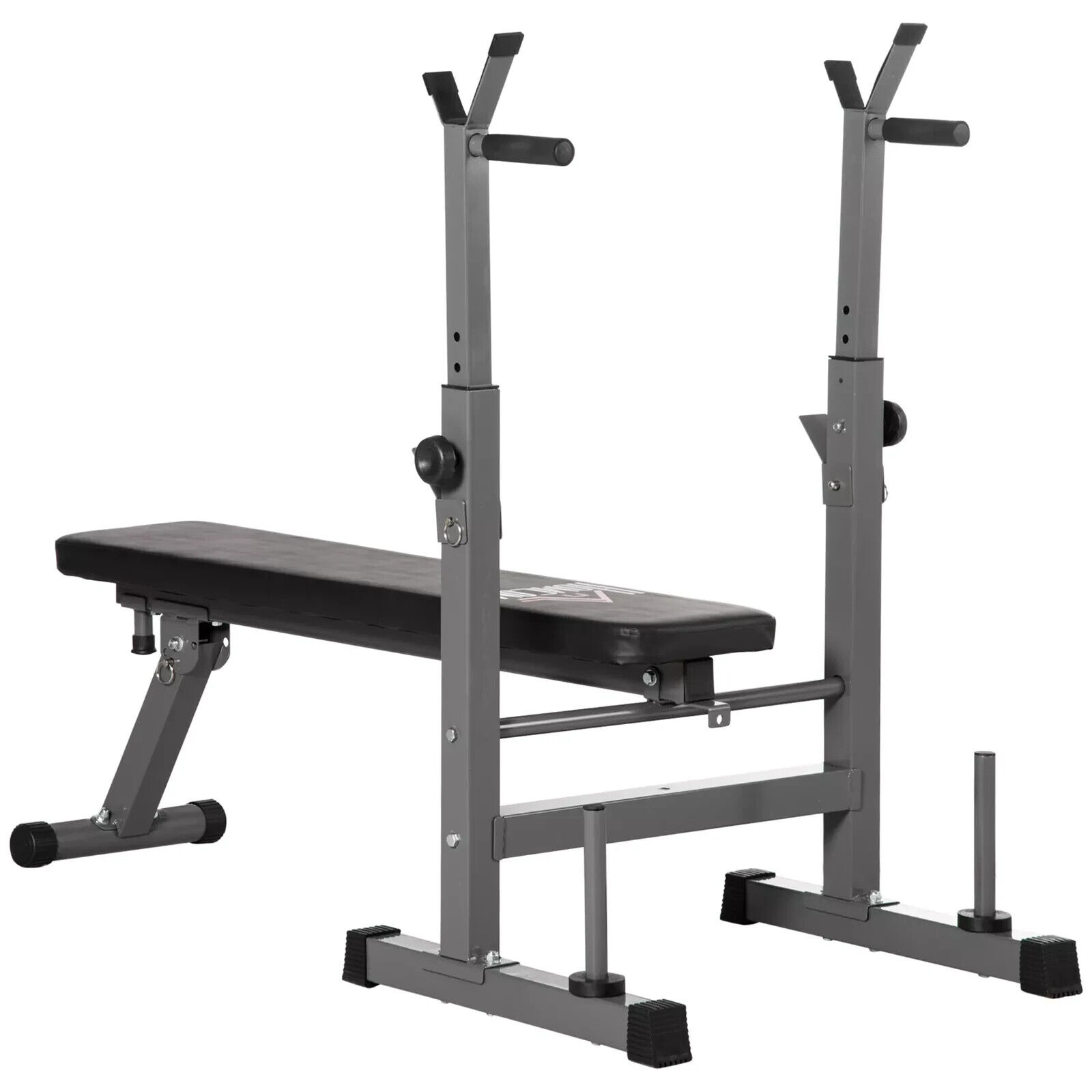 HOMCOM Adjustable Weight Bench Foldable with Barbell Rack and Dip Station Grey