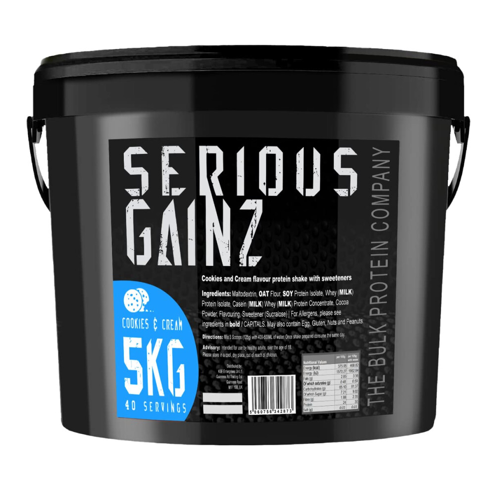 The Bulk Protein Company, SERIOUS Gainz - Whey Protein Powder - Weight Gain, Mass Gainer - 30g Protein Powders (Cookie & Cream, 5kg)