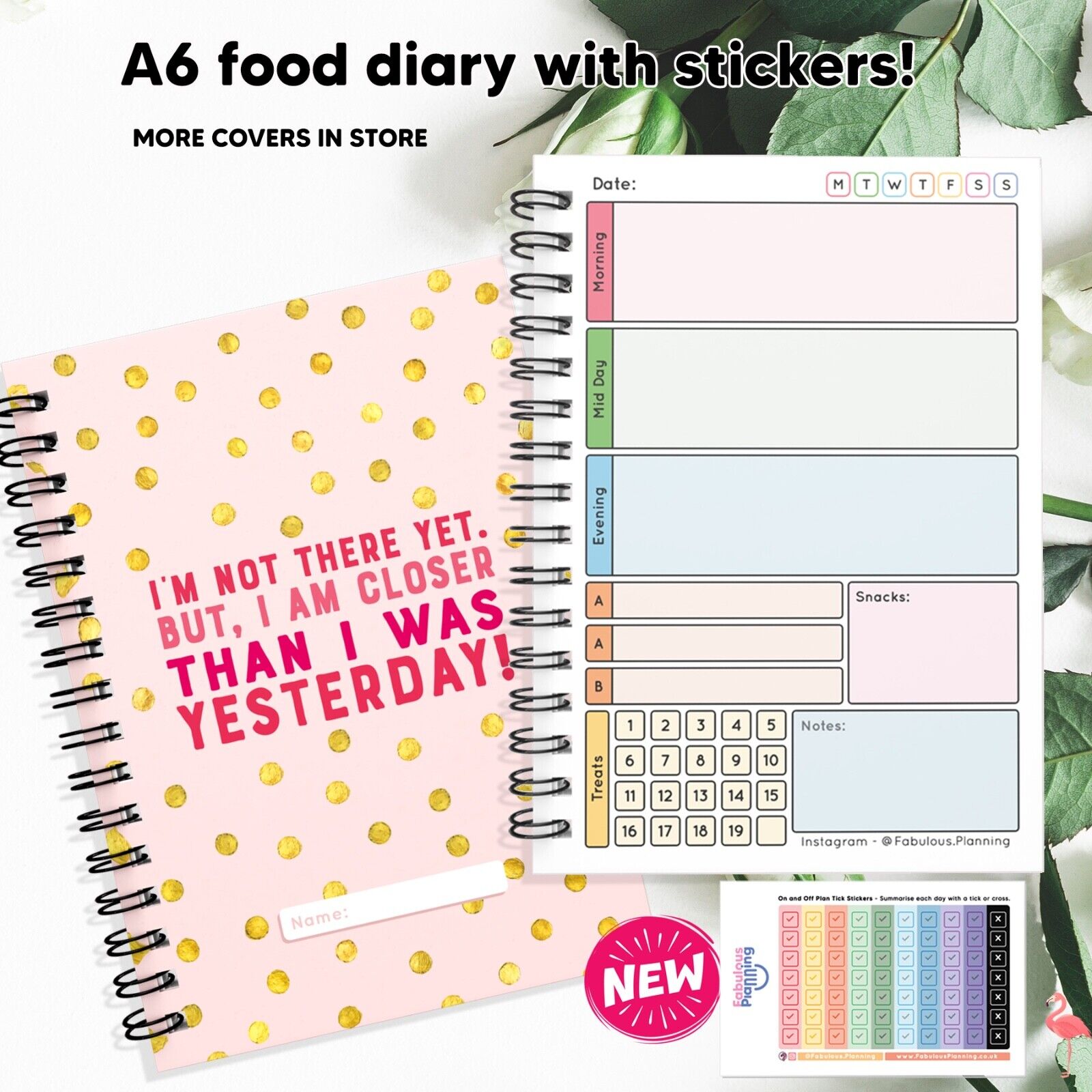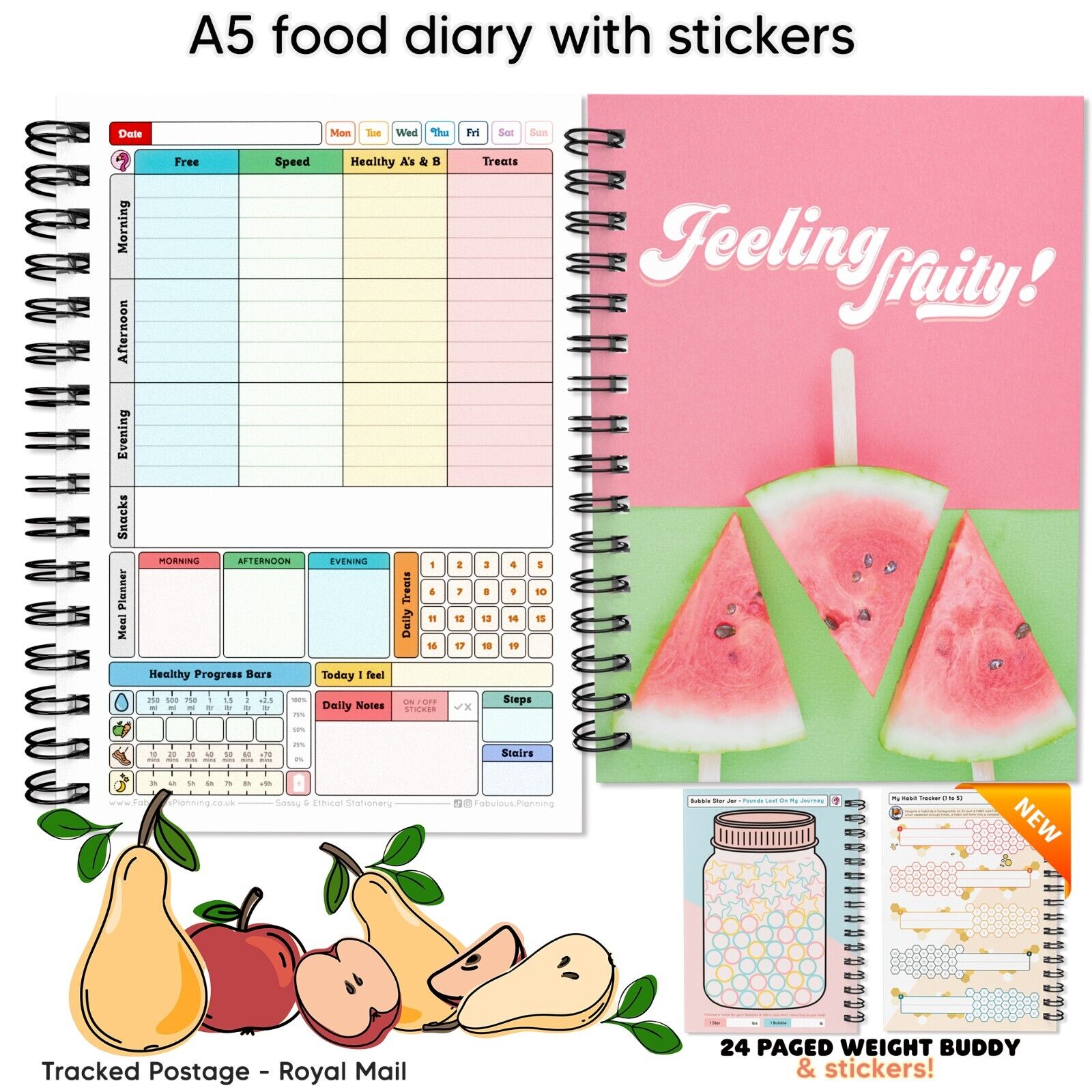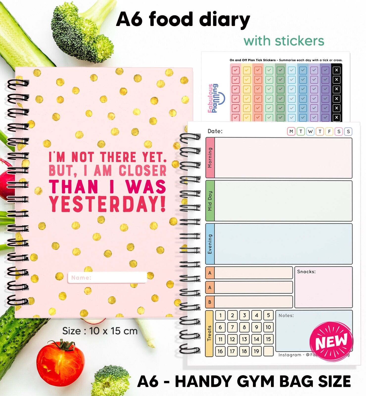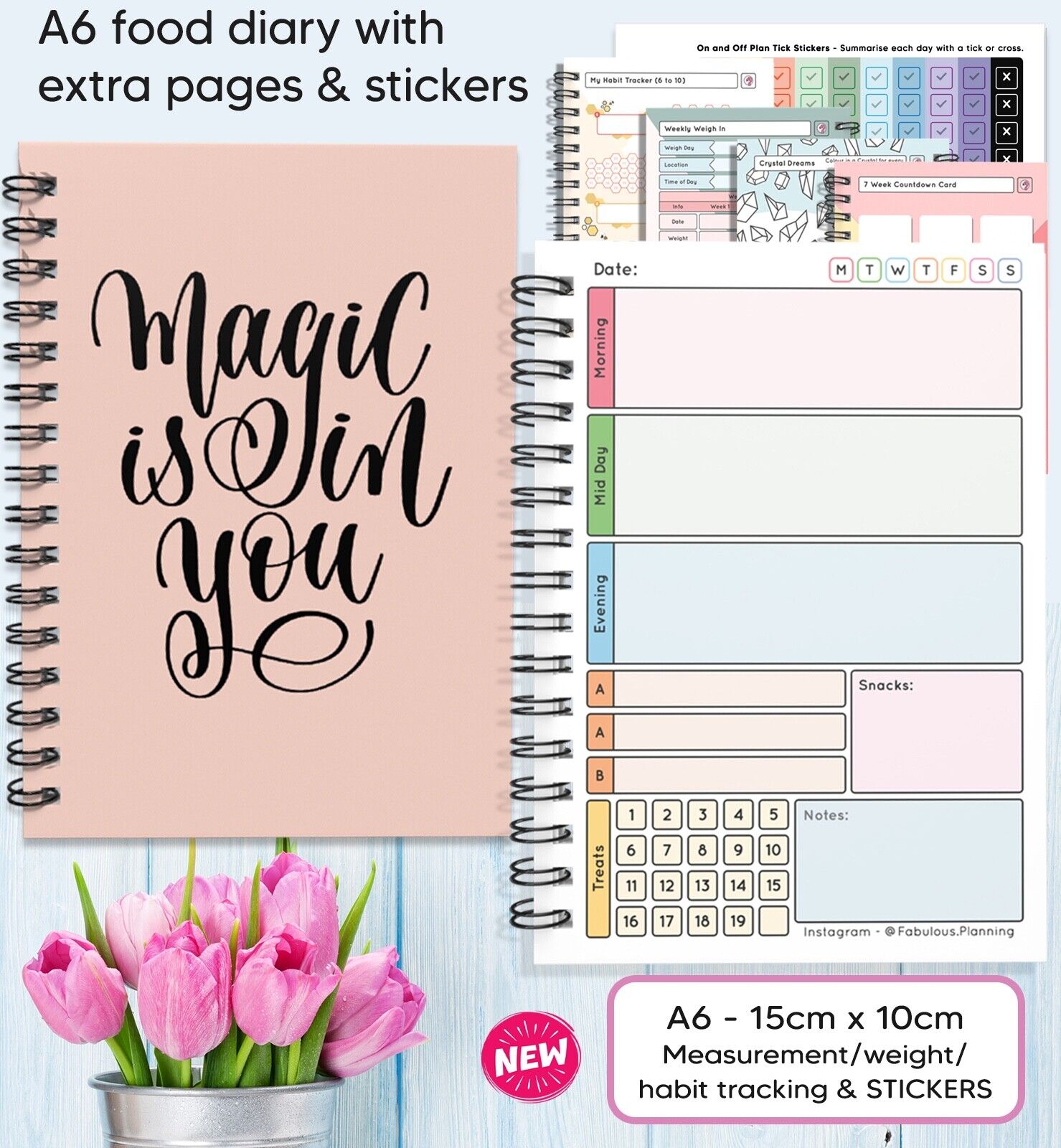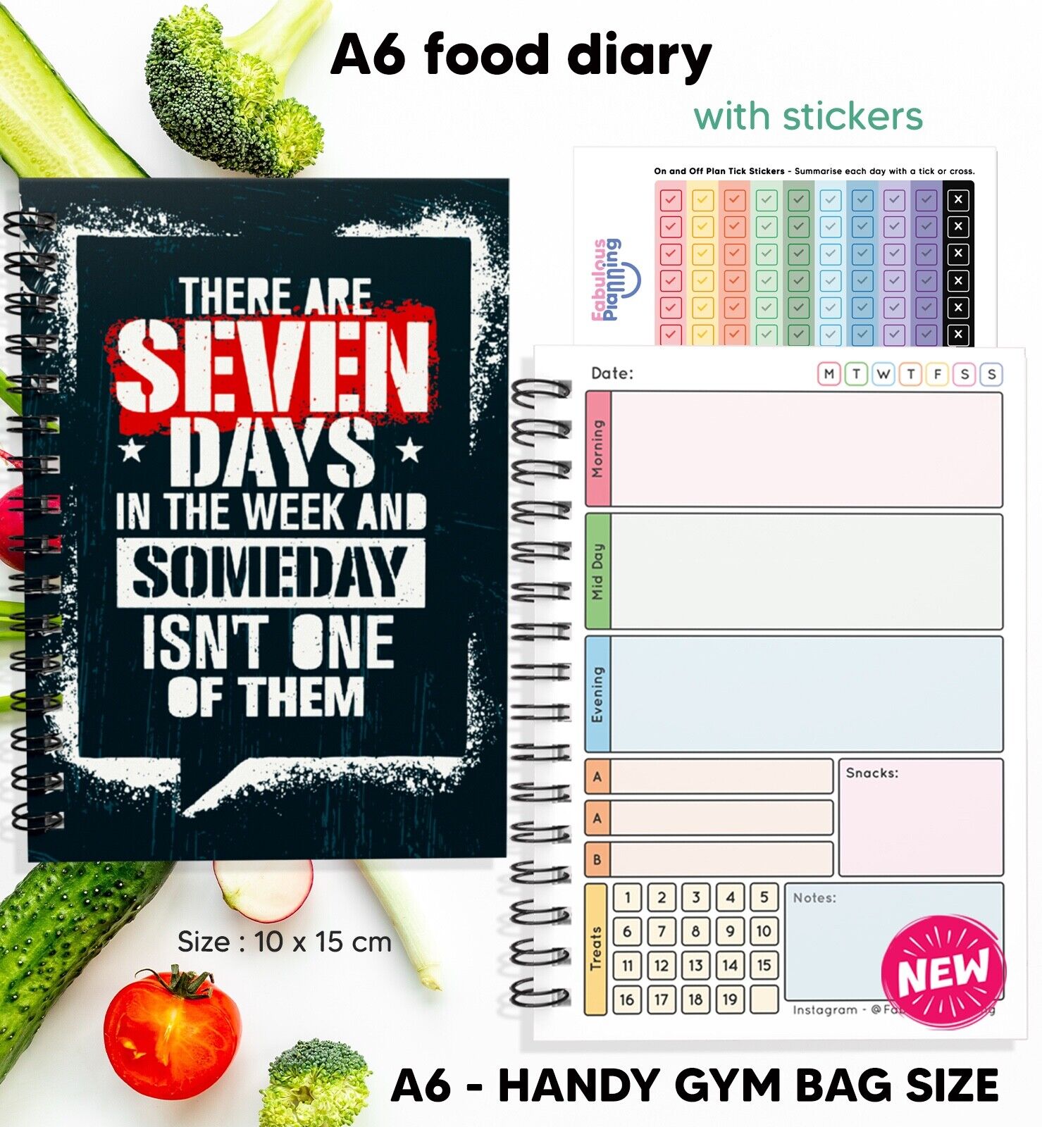 FOOD DIET DIARY, WEIGHT LOSS, CARD,TRACKER,SLIMMING,ON/OFF PLAN STICKERS A5