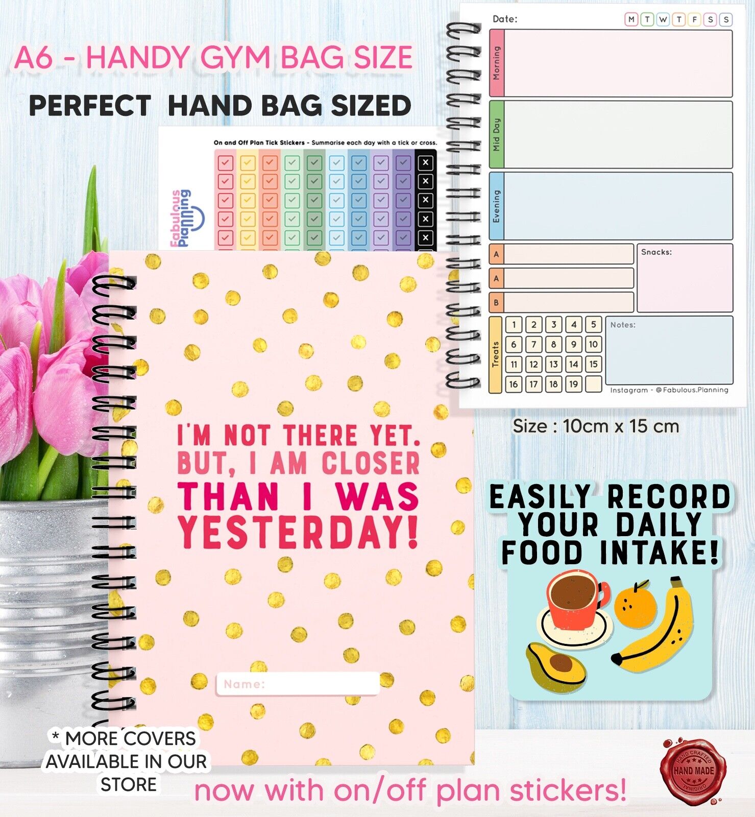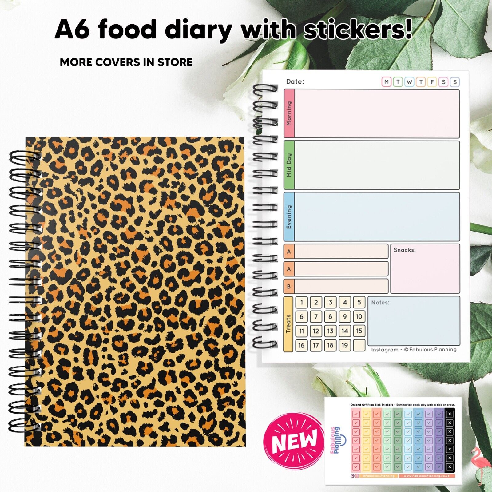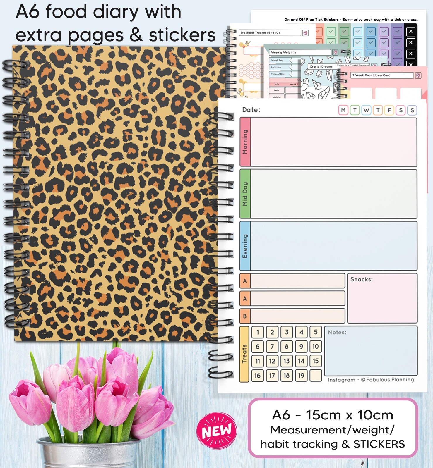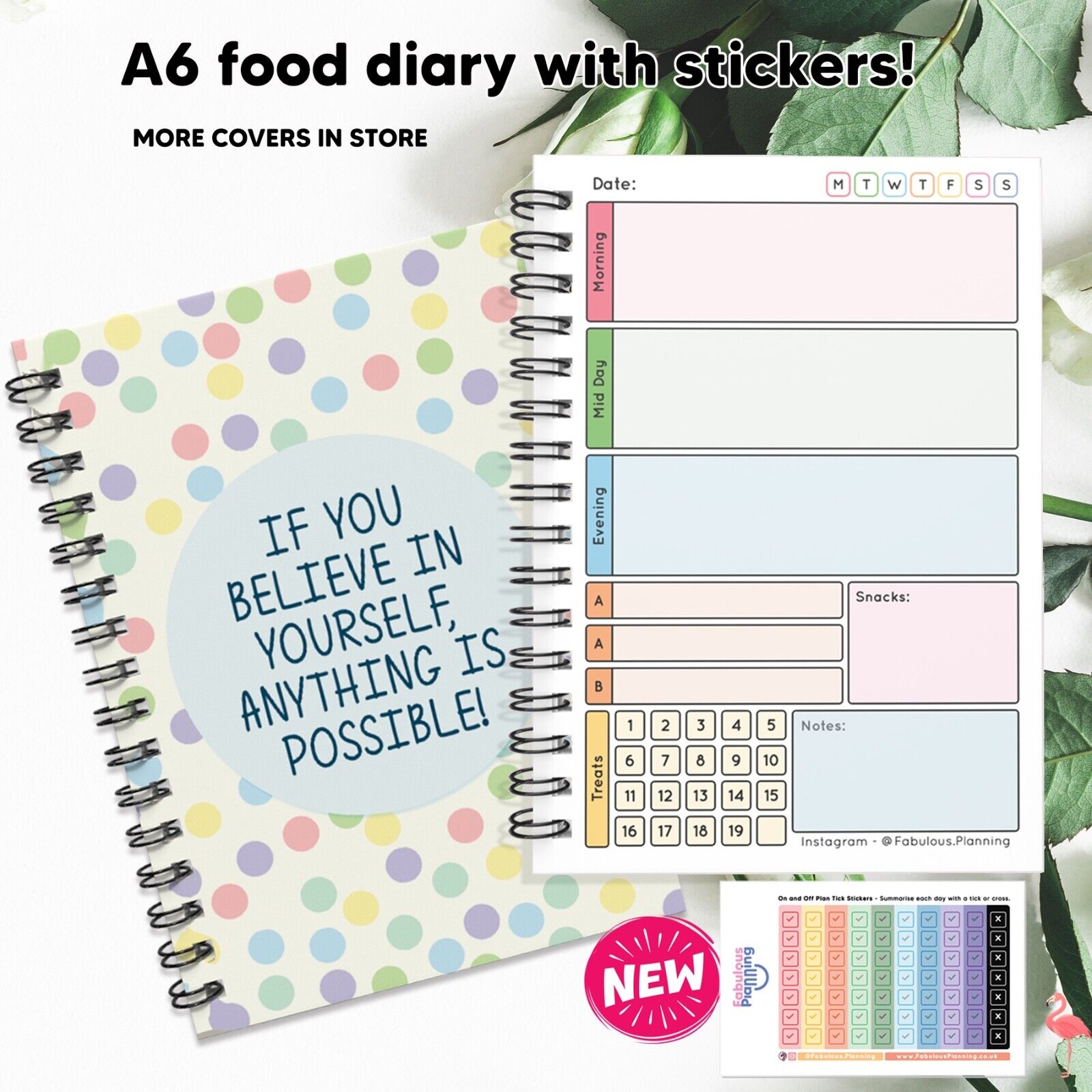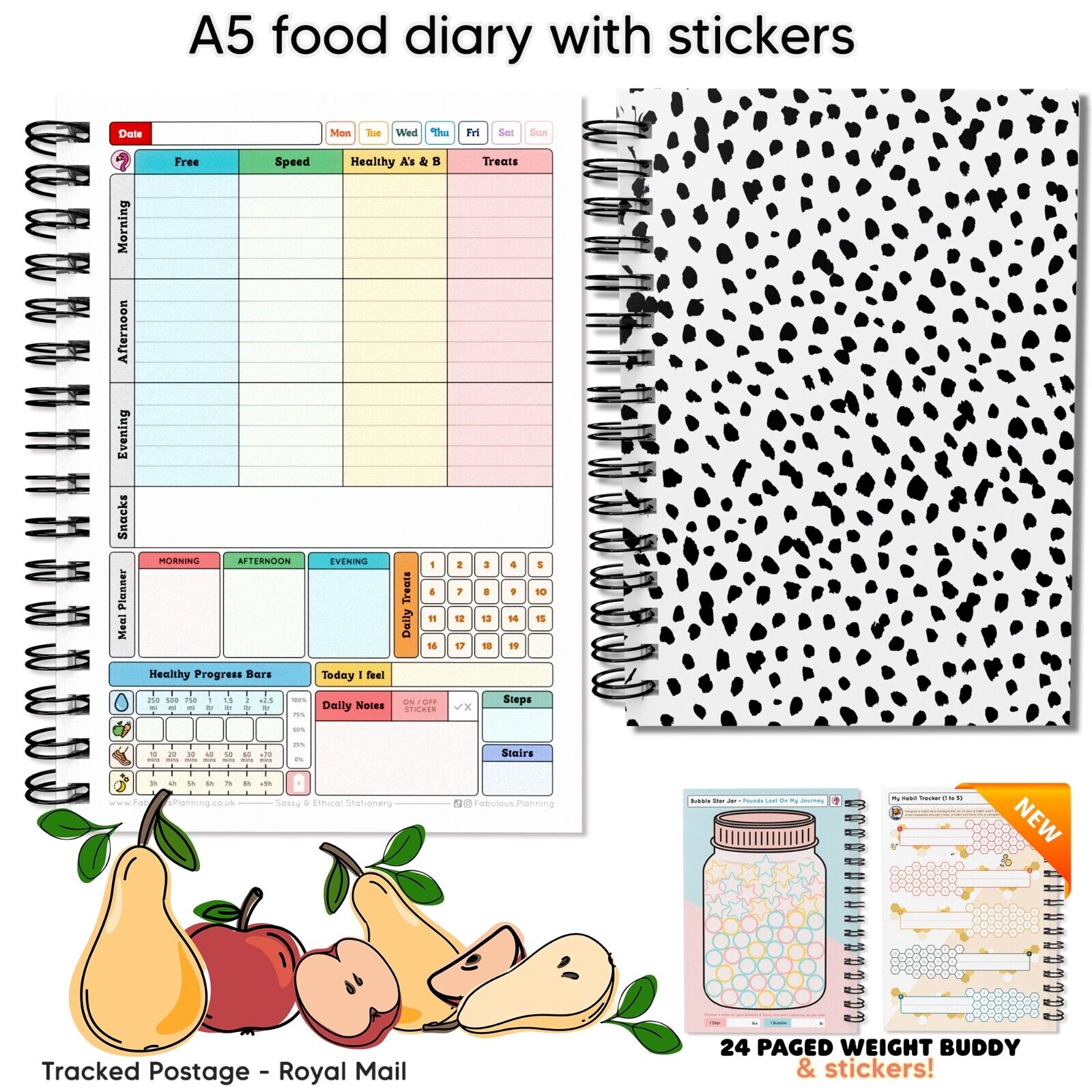 FOOD DIET DIARY, WEIGHT LOSS, CARD,TRACKER,SLIMMING,ON/OFF PLAN STICKERS A5