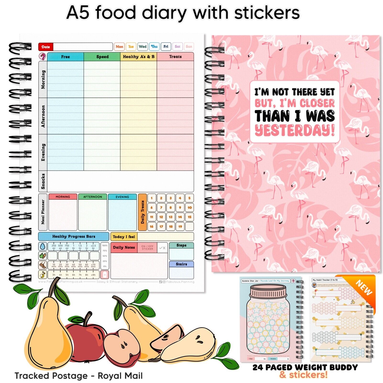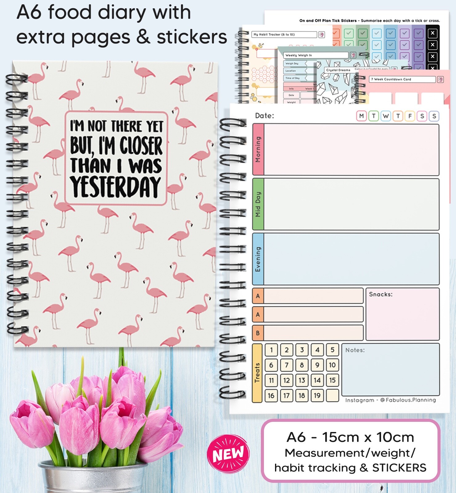 Food Diary Diet Journal Slimming World Compatible Weight Loss TrackerA6 Flamingo