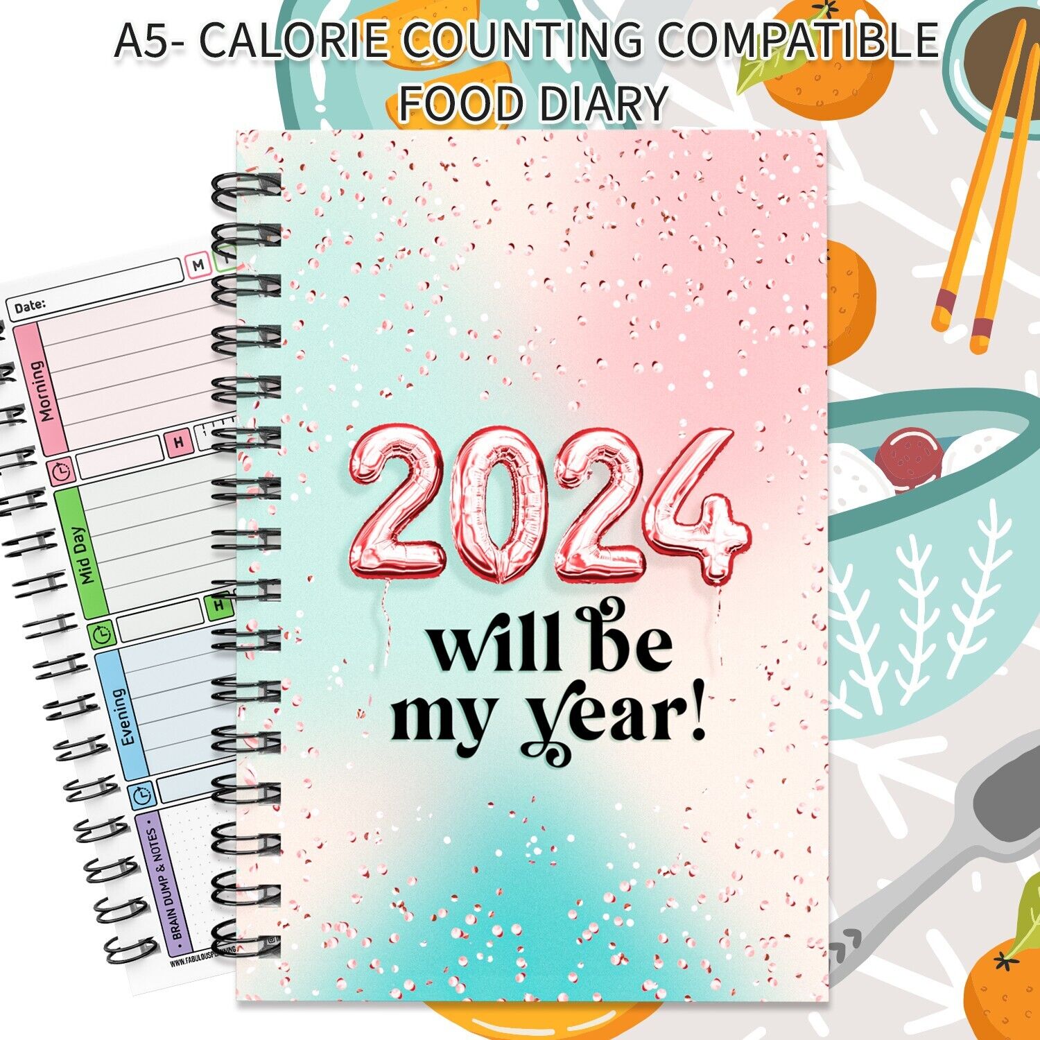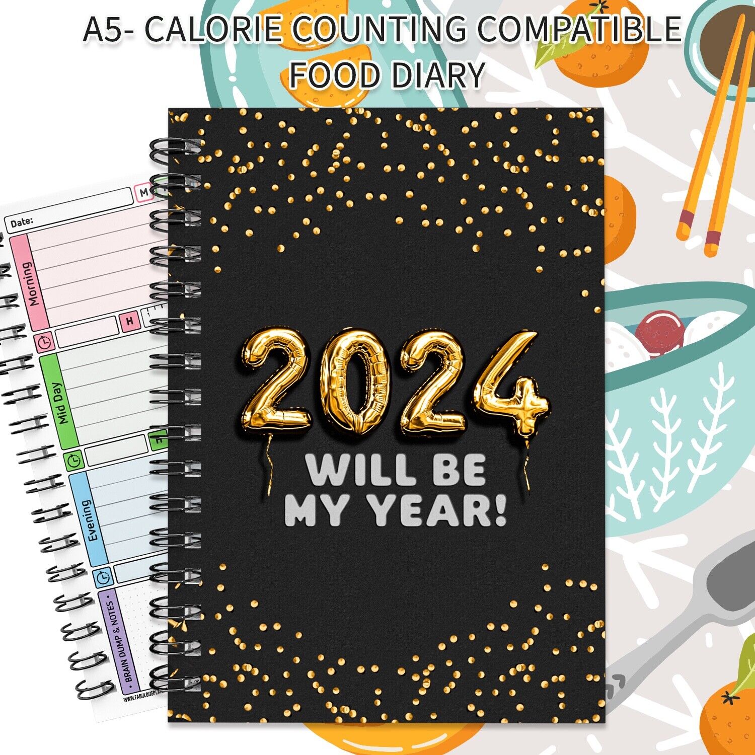 A5 FOOD DIARY, WEIGHT LOSS, DIET, PLANNER, TRACKER, SLIMMING, EXTRA, EASY, KETO