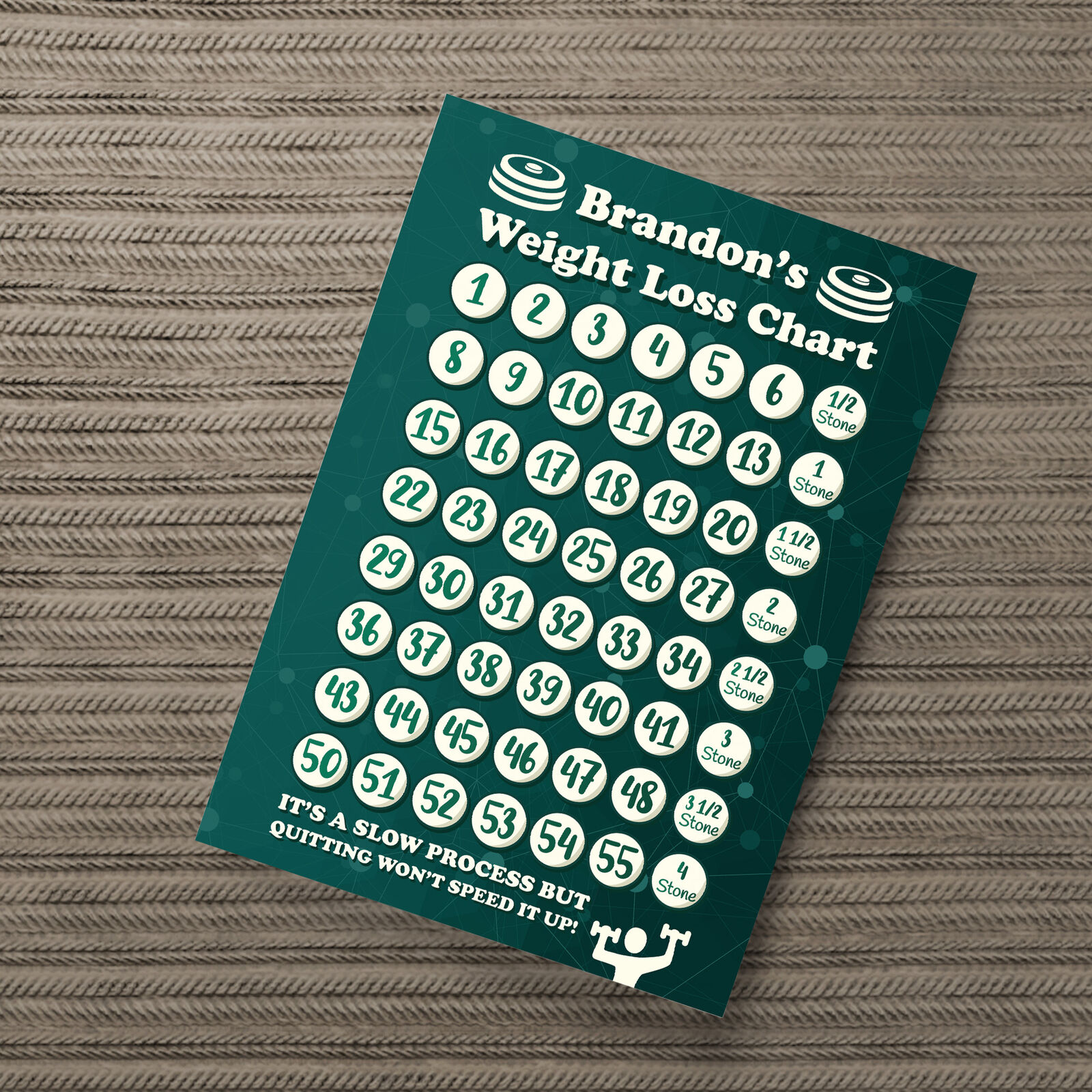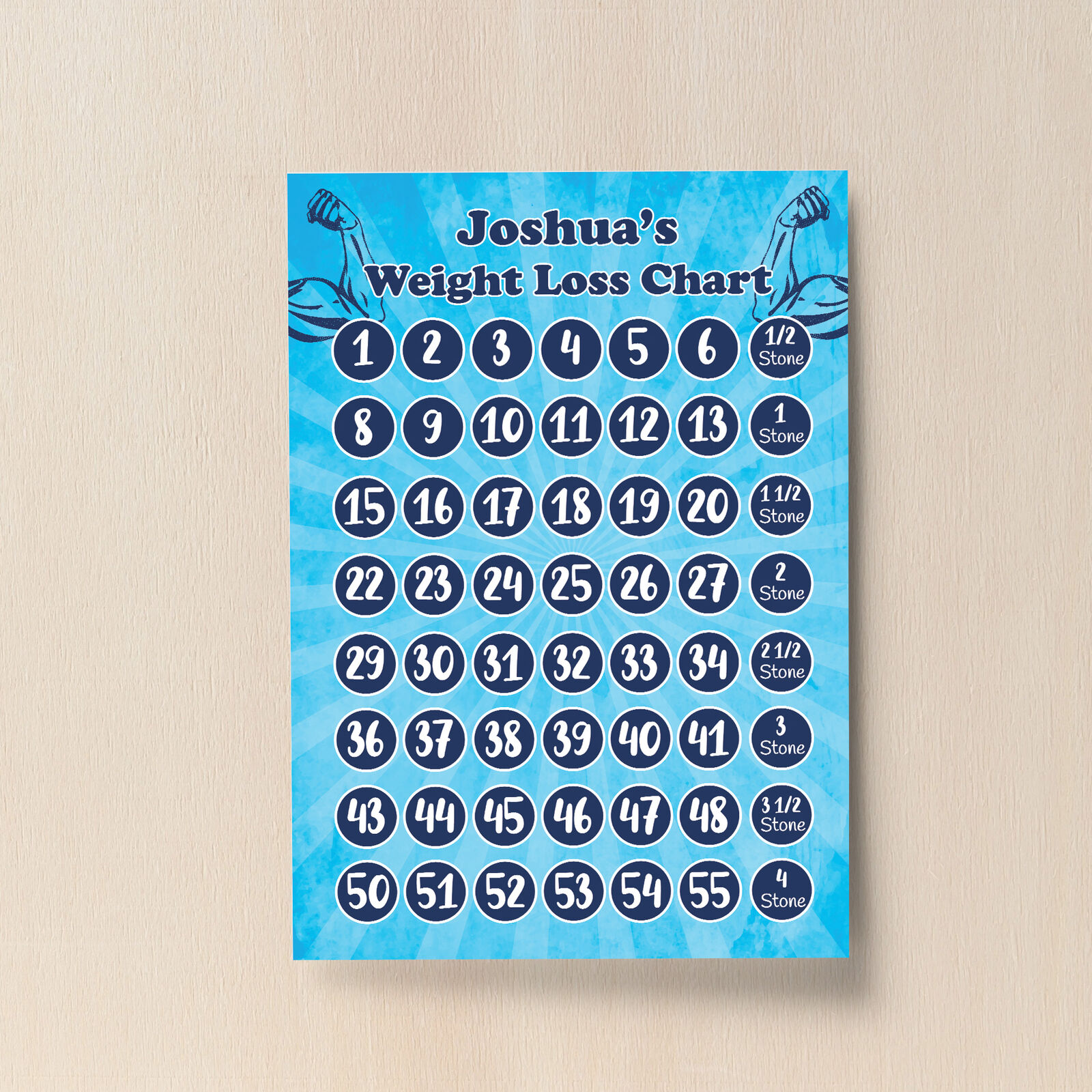 Mens Weight Loss Tracker PERSONALISED Chart Weight Goal Motivational Mark Off