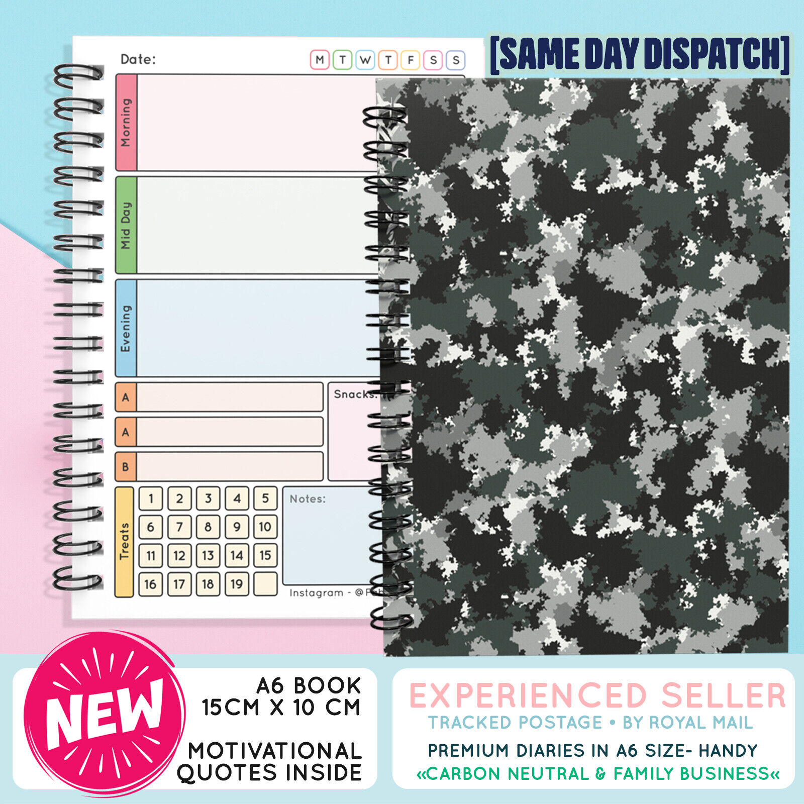 A6 FOOD DIARY, WEIGHT LOSS,BUDDY, NOTEBOOK, TRACKER, SLIMMING, EXTRA, EASY, 7WK