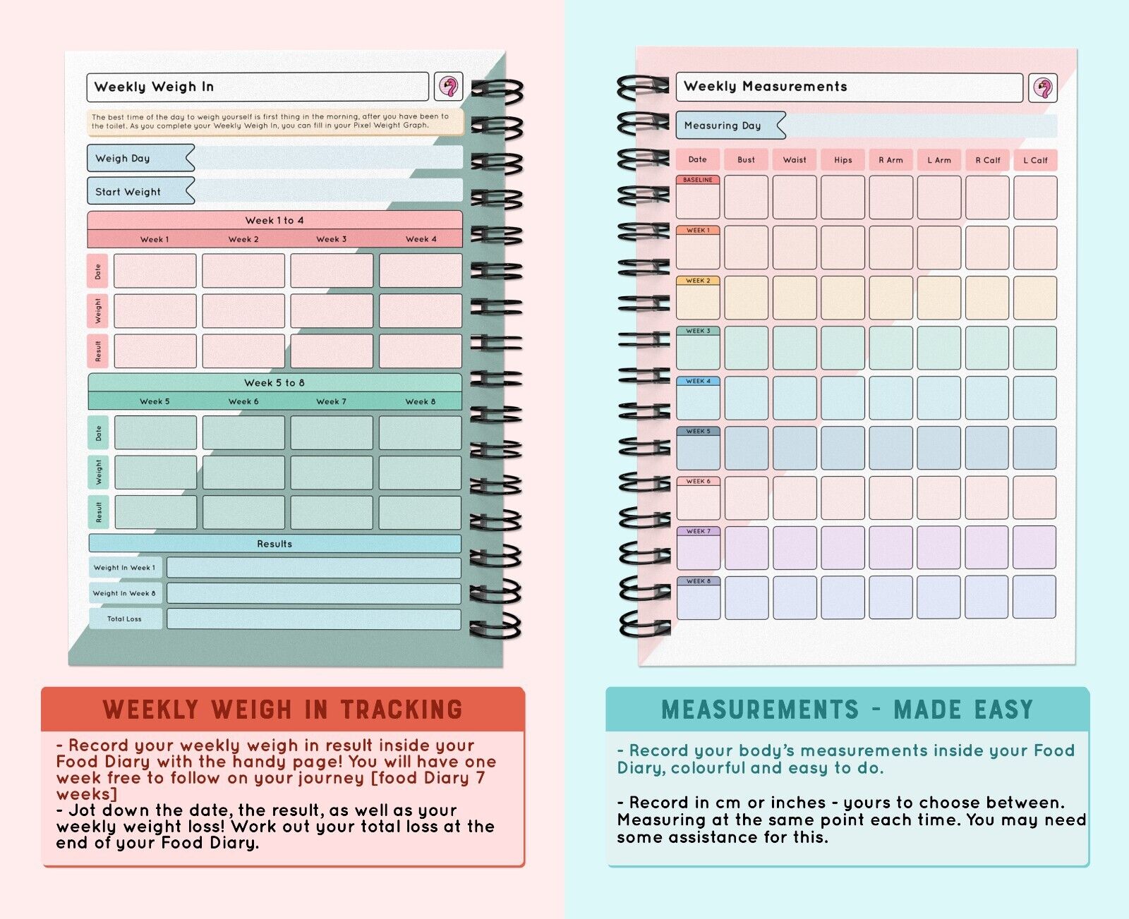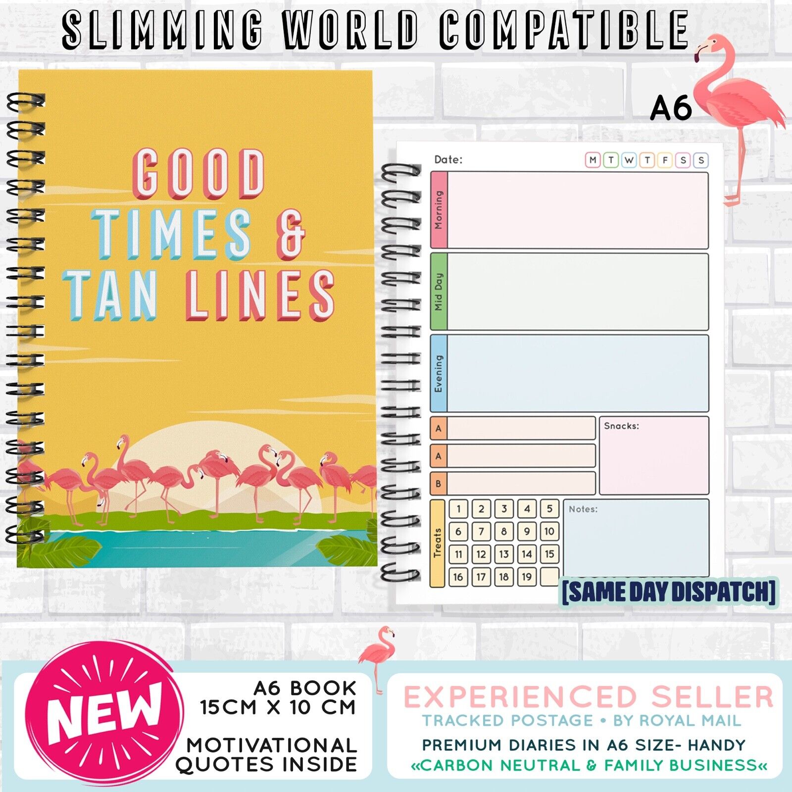 Food Diary Diet Journal SLIMMING Compatible Weight Loss TrackerA6 Flamingo