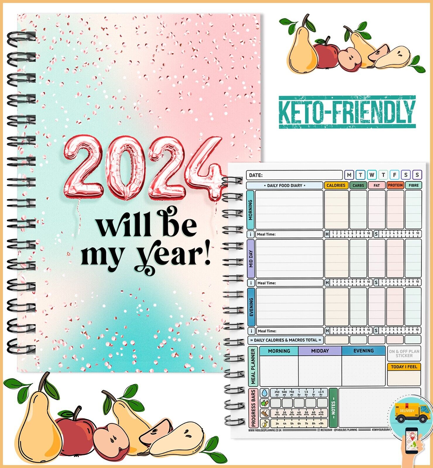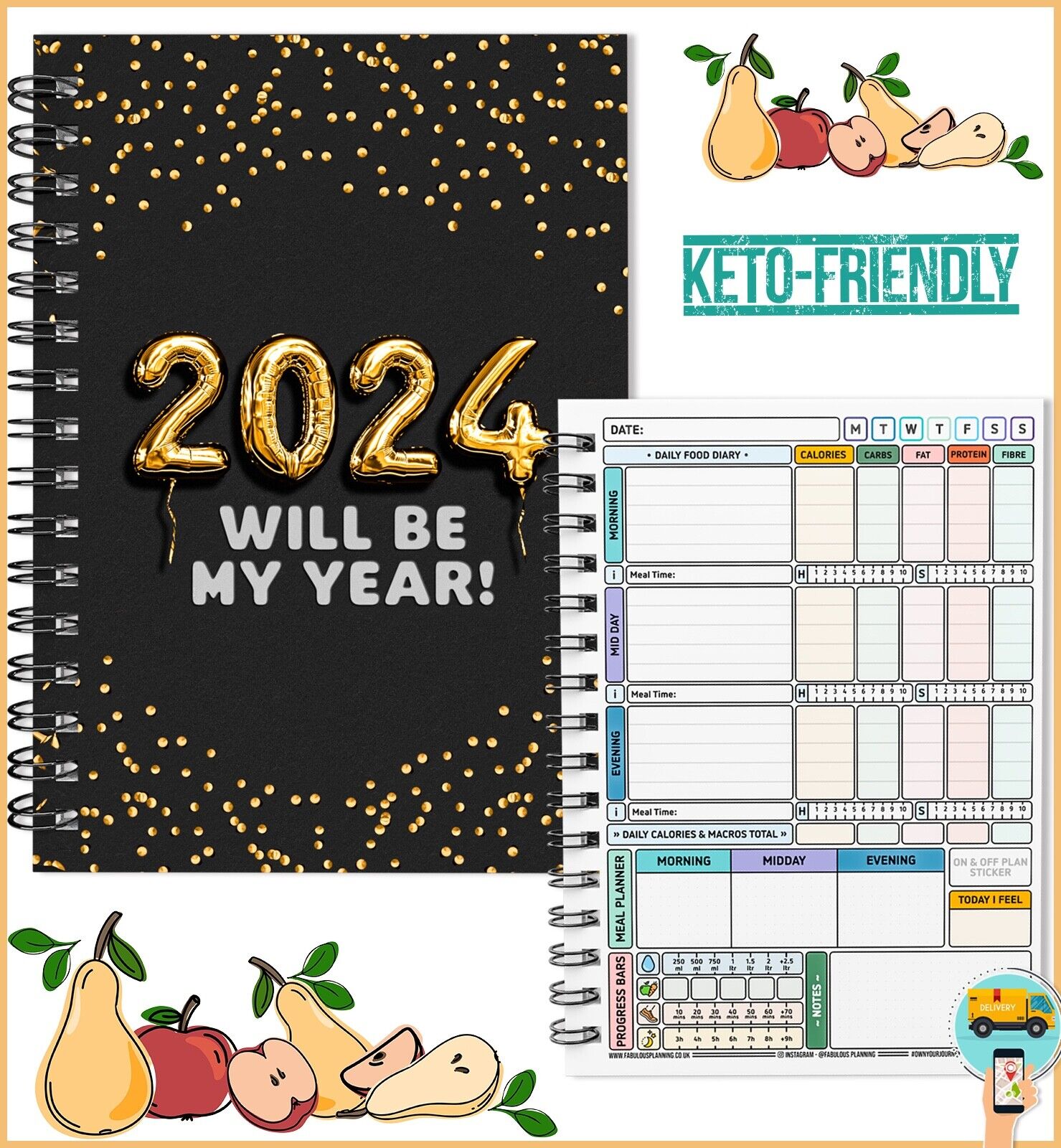 FOOD DIARY, WEIGHT LOSS, DIET, PLANNER, TRACKER, SLIMMING, EXTRA, EASY, KETO C40