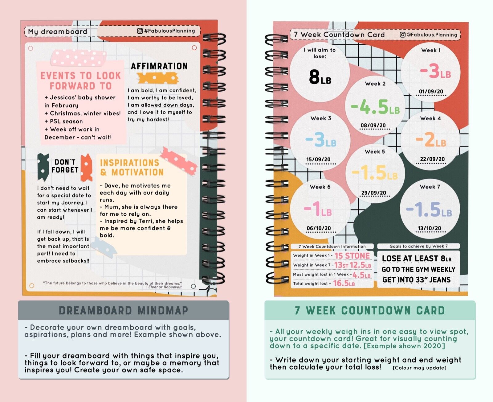 🌈Slimming World Compatible Food Diary Diet Planner Weight Loss Tracker Journal