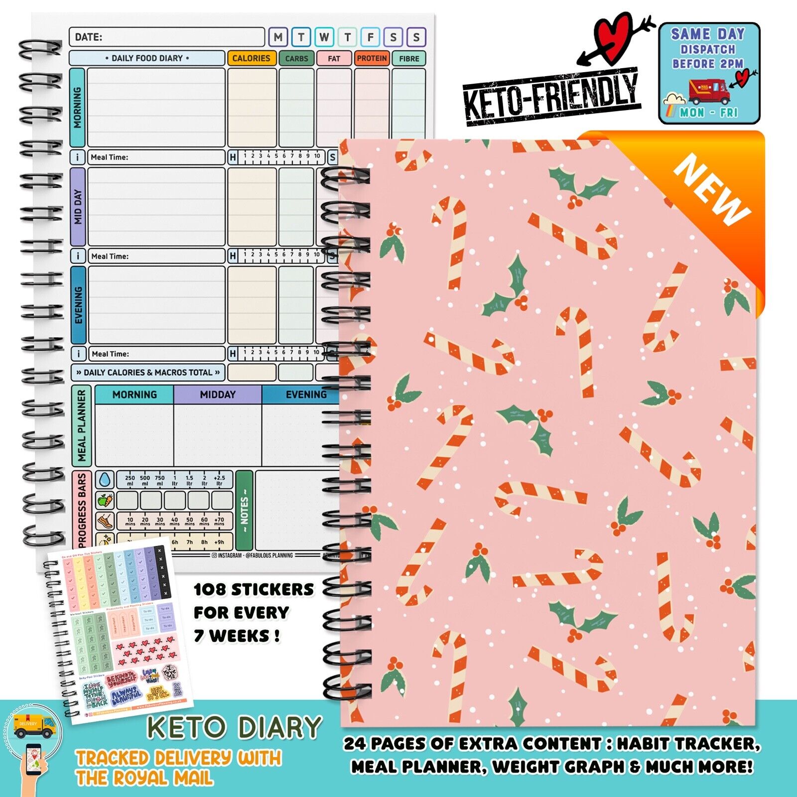 A5 Diet Diary Slimming KETO/ LOG Weight Loss Tracker XMAS Planner Food Journal