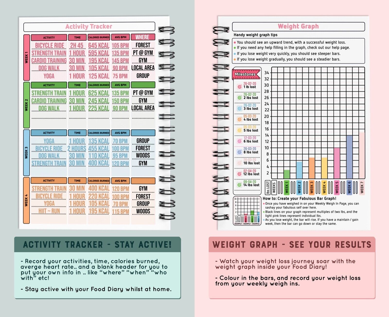 DIET Food Diary Slimming planner 7WK WEIGHT LOSS JOURNAL TRACKER 1135