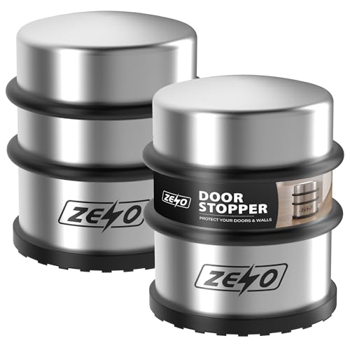 ZENO Door Stop 2 Pack | Door Stopper | Stainless Steel Door Stoppers for Floor | Door Stopper with Anti Slip Base | Protect Your Doors & Walls | Weighted Door Stop | Chrome