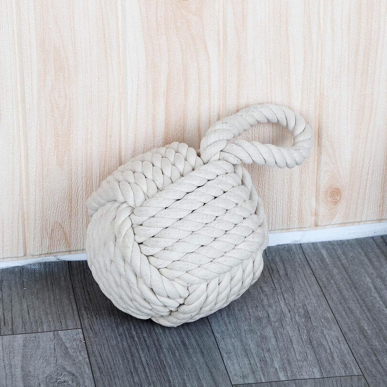 Pomeat Decorative Door Stop, Sailors Knot Rope Door Stop, Nautical Door Stop, Weighted Door Stopper, Heavy Doorstop for Bedroom, Living Room Door, Window Wedge, Bookend 5.2 inch (White)