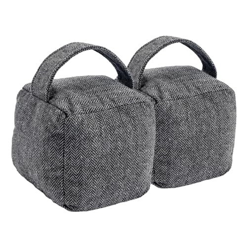 Nicola Spring Fabric Door Stop - Grey - Pack of 2 - Indoor Herringbone Decorative Wedge Stopper Interior Weighted Doorstop with Handle for Home, Office