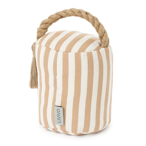 LIVIVO Weighted Door Stop - Sand-Filled Heavy Door Stopper with Boho Striped Fabric & Hemp Handle, Decorative Door Stop for Home Bedroom Living Room Office (Boho Chic)