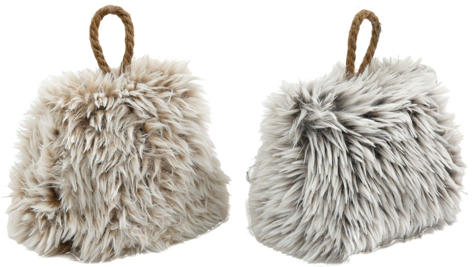 Faux Fur Doorstop | Plush Fluffy Weighted Door Stop With Jute Handle - 15cm