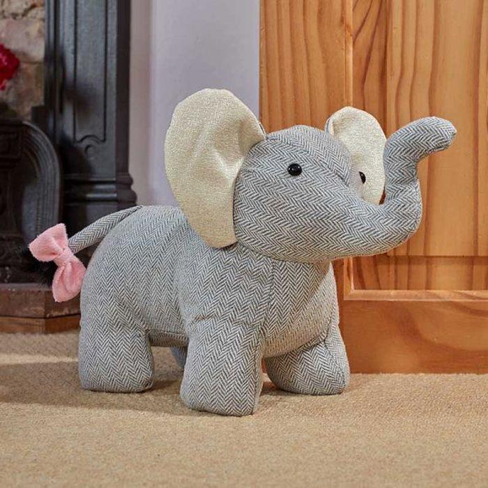 Carousel Home Peanut Elephant Doorstop Grey Ribbed Fabric Animal Doorstop | Novelty Indoor Grey Elephant Shaped Door Stop | Decorative Weighted Elephant Door Stopper - 1.5kg
