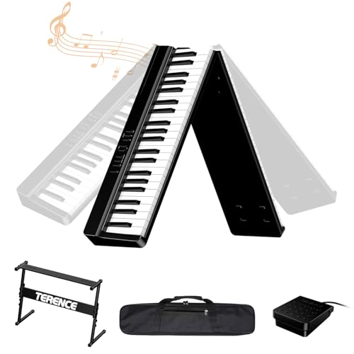 TERENCE Folding Keyboard Piano 88-key piano keyboard with Z-stand Portable semi-weighted keyboard 10W speaker Built-in recording function Bluetooth MIDI interface Suitable for children and adults