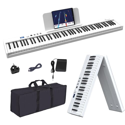 OYAYO Folding Piano Keyboard, 88 Keys Full Size Semi-Weighted Keyboard Support Bluetooth & MIDI, Foldable Piano Keyboard with Sustain Pedal and Piano Bag for Beginner Best Gift (White)