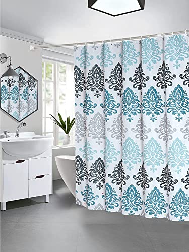 Furlinic Shower Curtain Mould Proof Resistantand Waterproof Washable Polyester Fabric Teal Bath Curtains with Weighted Hem 16 Hooks for Wetroom Extra wide 96x78 Inch.