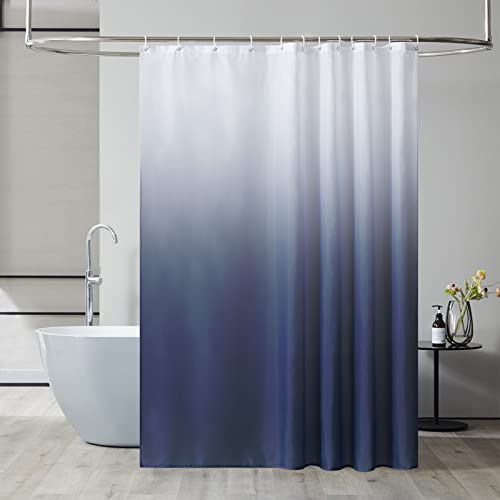 Furlinic Wide Shower Curtain Wterproof Mildew Resistant Gradient White to Blue Bath Curtains Fabric 200x200cm Weighted Hem with 12 Hooks 78x78 Inch.