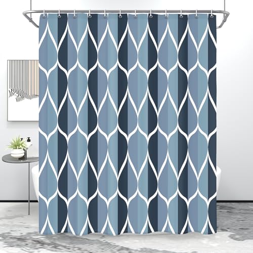 Gelbchu Aegean Blue Geometric Shower Curtain, Waterproof Design and Polyester, Quick-Drying, Weighted Hem, Blue Fabric Shower Curtains Set for Bathroom W 72 x H 72, Machine Washable with 12 Hooks