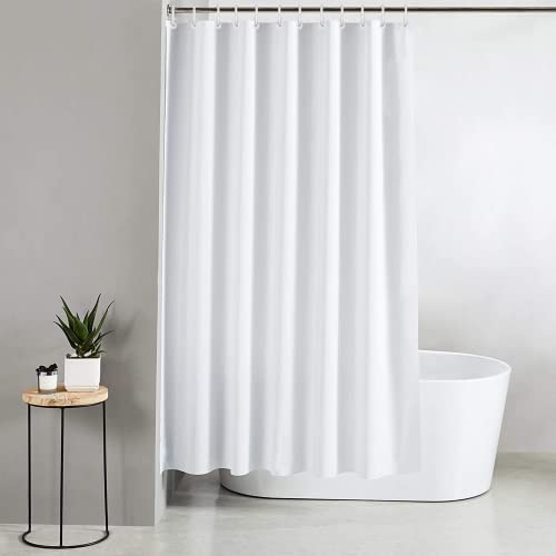 Furlinic Shower Curtain Mould Proof Resistant Wetroom Bathroom Polyester Fabric White 7ft Shower Curtains Liner Waterproof Rustproof Washable Weighted with 12 Hooks Extra Long 180x210cm 72x84.