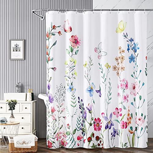 FUN WEEKEND 𝟳𝟮" 𝘅𝟳𝟮" Floral Shower Curtain Waterproof Polyester, Shower Curtains for Bathroom Heavy Weighted Hem, Quick-Drying, Machine Washable Fabric Plant Shower Curtain with 12 Hooks